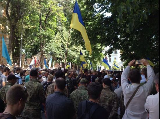 Командир батальона "Донбасс", который и призвал людей выйти под стены Администрации, попросил присутствующих вести себя цивилизованно - "ничего не бросать, не бить и не уподобляться "москалям".