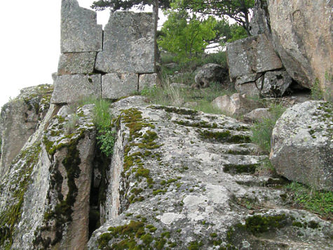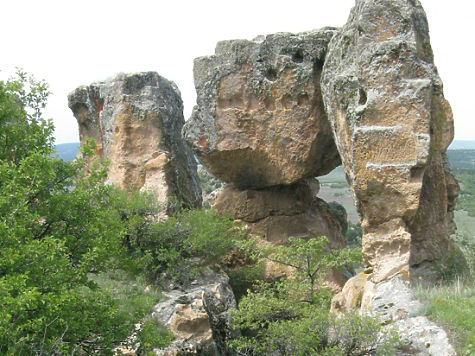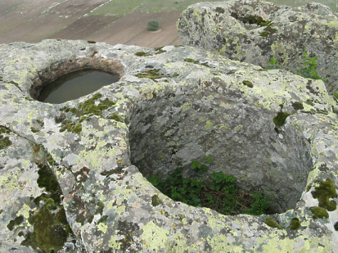 Они сильно разрушены, но все-таки отчасти сохранили свои первоначальные очертания. И на некоторых таких горах в районе Пишмиш-Кале и Акпара-Кале мы находили удивительные следы неких очень старых сооружений, которые я назвал «эльфийскими городами», — остатки стен, когда-то окружавших вершину, а внутри такого окаймления — руины на месте прежних построек: явно сместившиеся со своего первоначального места, порой лежащие на боку, «вверх ногами» мегалиты, куски каких-то строений с вырезанными в камне проемами (оконными и дверными?)…