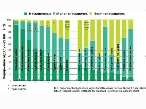 Кроме того, животные жиры отличаются высоким содержанием насыщенных жиров (жирных кислот, в которых нет двойных связей). Эти два компонента — трансжиры и насыщенные жиры — и ведут в основном к развитию неинфекционных заболеваний — сердечно-сосудистых, диабета, онкологии, в общем, всех, связанных с метаболическими нарушениями, по которым Россия сейчас лидирует.