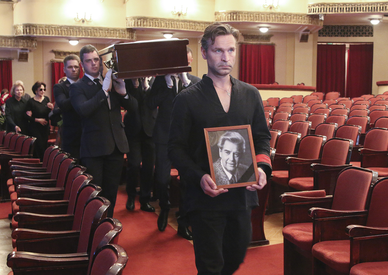 Панихида подходит к концу. Крепкие ребята из ритуальной службы в строгих черных костюмах поднимают гроб с постамента, под аплодисменты проносят через всё фойе, заходят в зал, проносят гроб по центральному проходу, спускаются по лестнице на улицу, и всю дорогу звучат аплодисменты. Аплодисменты на прощание замечательному артисту, тонкому, воспитанному, интеллигентному человеку, чья скромность является синонимом слова «достоинство». Аплодисменты звучали до тех пор, пока задняя дверца красивого черного «Мерседеса» не закрылась и машина медленно не отъехала от Театра Вахтангова.