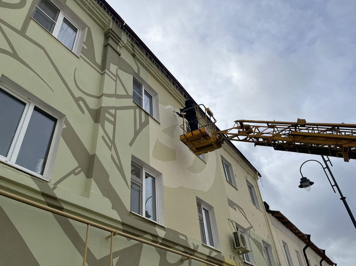 Теперь зарайских бизон появился на 60-метровом фасаде жилого здания, что находится на пути к музею, где выставляется артефакт.