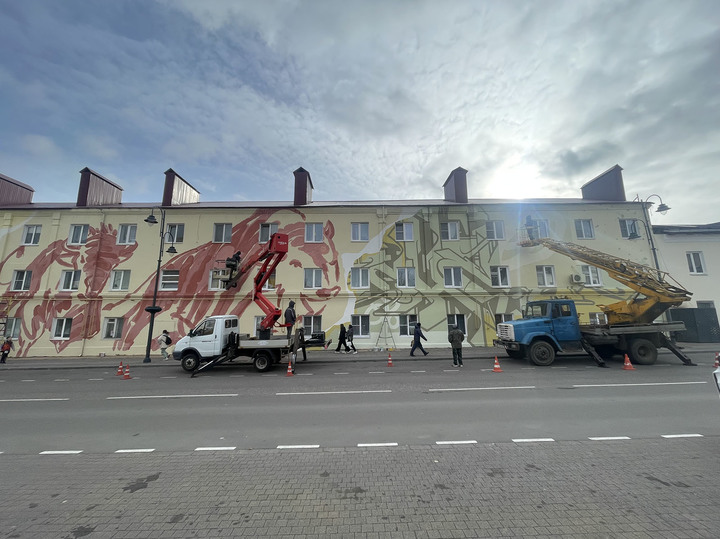 На мурале изображен даже не один, а два бизона, которые бегут как будто бы на зрителя. Это не копия артефакта, а авторский взгляд на тему. Сцена с бизонами эпохи палеолита словно врезана в здание. Вокруг нее белое обрамление, за которым начинаются уже современные граффити, в стиле конструктивизма, которые напоминают о том, что в Зарайске было механическое производство. Оно уже тоже история – завод сейчас не работает. Теперь город развивается как туристический центр, где находятся свои притягательные точки: это, например, дом ученицы Родена Анны Голубкиной, где скульптор родилась и умерла, и имение Даровое близ города, где свои детские годы провел Федор Достоевский. Параллельно с фестивалем идет реконструкция набережной, Кремля, который называют самым маленьким в России, исторических улиц и зданий.