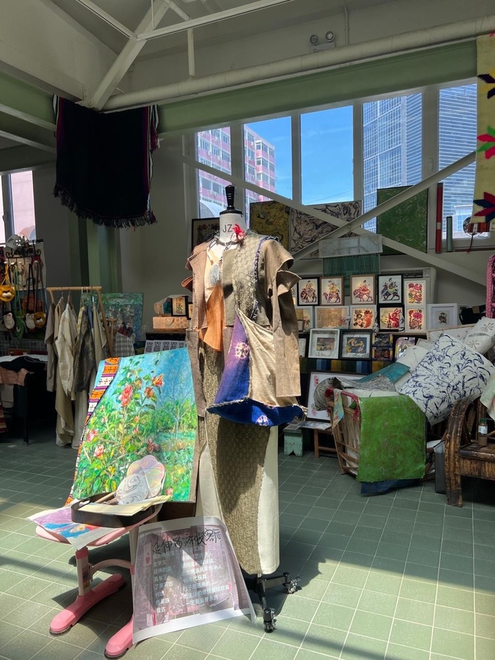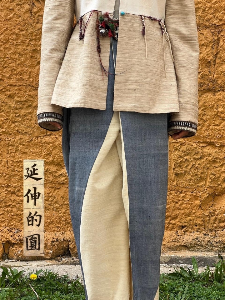 В небольшом помещении на трёх стойках с вешалками - вещи из ткани, название которых я точно не знаю. А это шёлк. Но не блестяще-струящийся, легкий с яркой расцветкой, к которым мы привыкли, а матовые, спокойных пастельных тонов, фактурные и на вид не так уж легки. Это самый что ни на есть натуральный шёлк, не тронутый никакой термической или химической обработкой. Его хозяйка - Ян Шень, молодая, улыбчивая, наливает нам с Алиной Фроленко (она помогает мне с переводом) зелёный чай, рассказывает о себе.