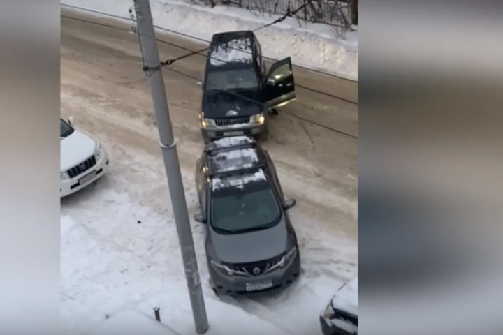В результате водитель внедорожника не нашел ничего лучше, как оттащить тросом мешавший ему Nissan, после чего он все же въехал на «свое» место. В момент, когда он совершал противоправные действия в отношении чужого имущества, авторы ролика вызывали полицию.
