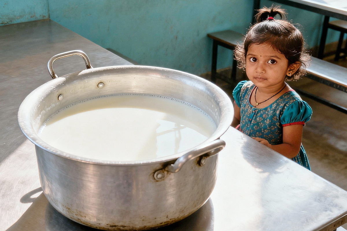 Инцидент произошел в конце сентября в деревне Буккарайасамудрам, где сотрудница службы безопасности школьной столовой взяла на работу свою малолетнюю дочь Акшиту. Во время пребывания на кухне ребенок, погнавшись за кошкой, поскользнулась и упала в большой металлический чан с кипящим молоком, который был оставлен для охлаждения под вентилятором.