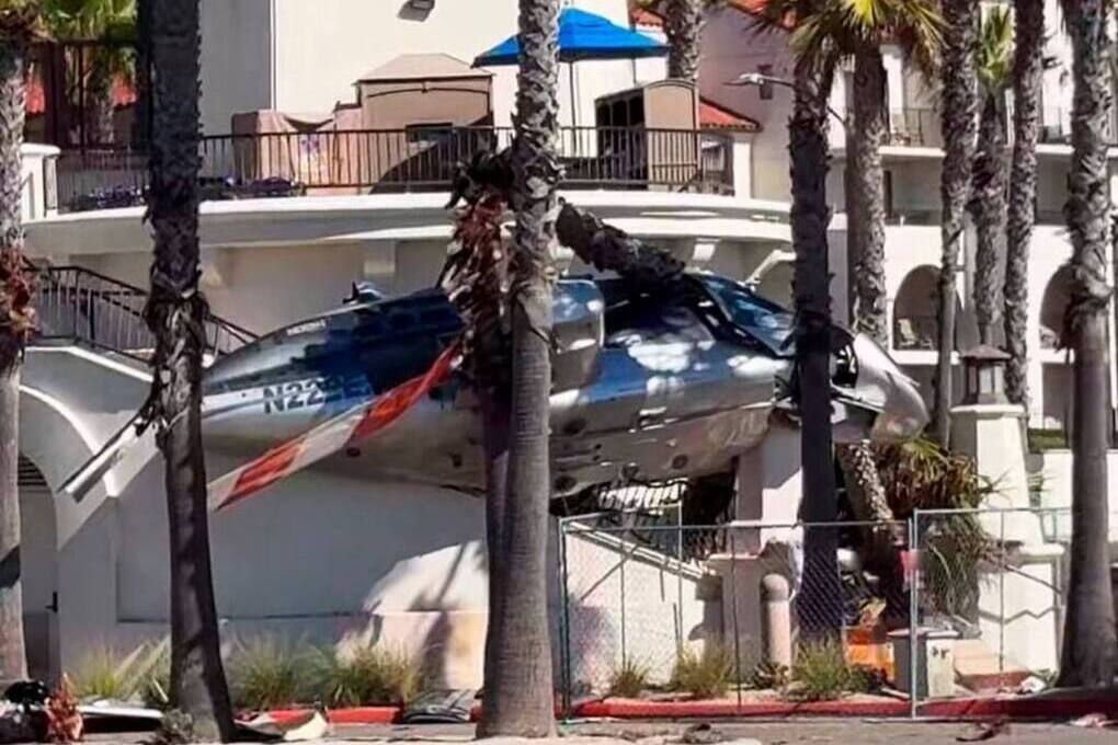 На видеозаписях, размещенных в Интернете, видно, как самолет начинает вращаться над Хантингтон-Бич, затем опускается к краю пляжа, где оказывается зажатым между пальмами и лестницей рядом с шоссе Пасифик-Кост.