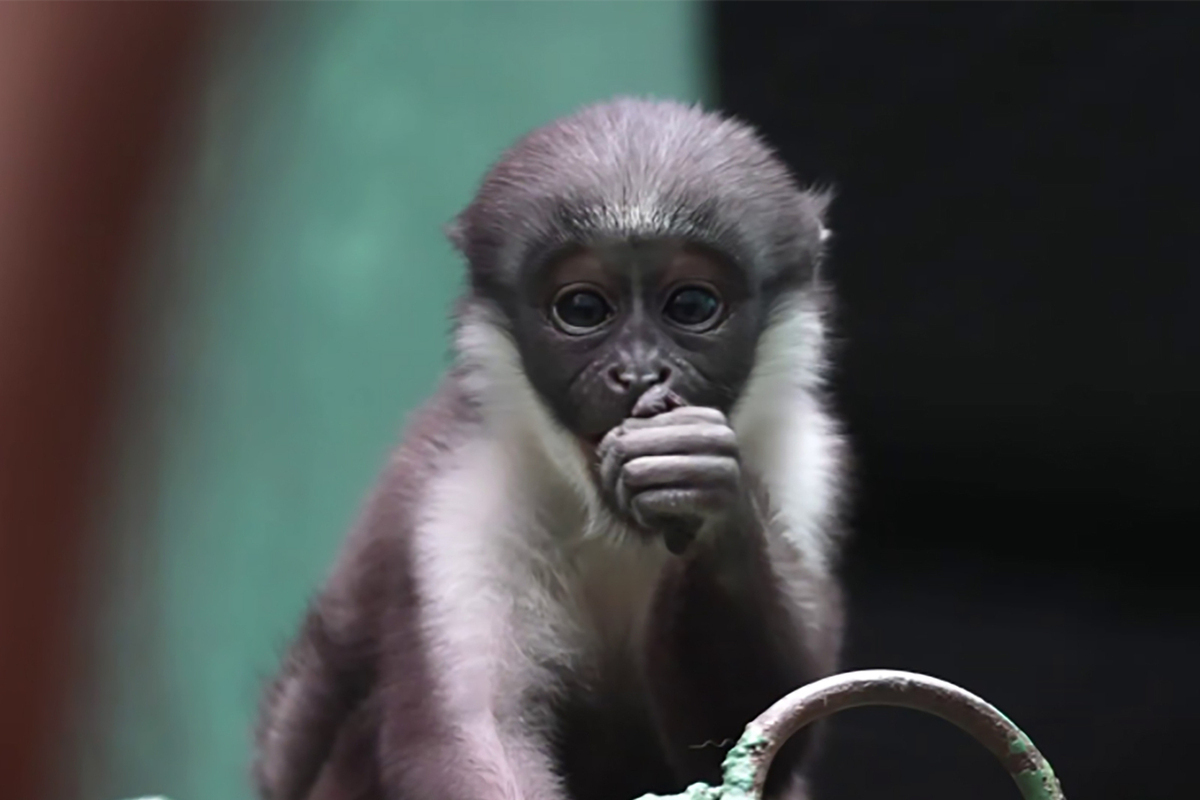 Новый малыш родился уже с открытыми глазами и покрытый шерстью. Он сразу же вцепился в маму и около двух недель жил исключительно у нее на животе. Затем новорожденный стал понемногу осваивать окружающий мир, перемещаться по веткам и даже играть со старшей сестрой. Кстати, кто именно составляет компанию Виоле — брат или сестра, пока неясно. У этого вида приматов паховая складка прикрывает половые органы, а брать малыша на руки зоологи пока не рискуют, чтобы не подвергать его лишнему стрессу.