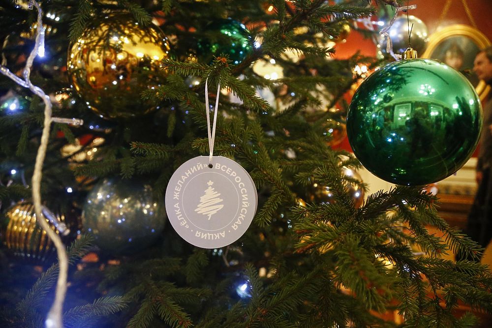 В фойе между тем установили «елку желаний»: волонтеры предлагали собравшимся выбрать и осуществить желание тех, кто нуждается в помощи.