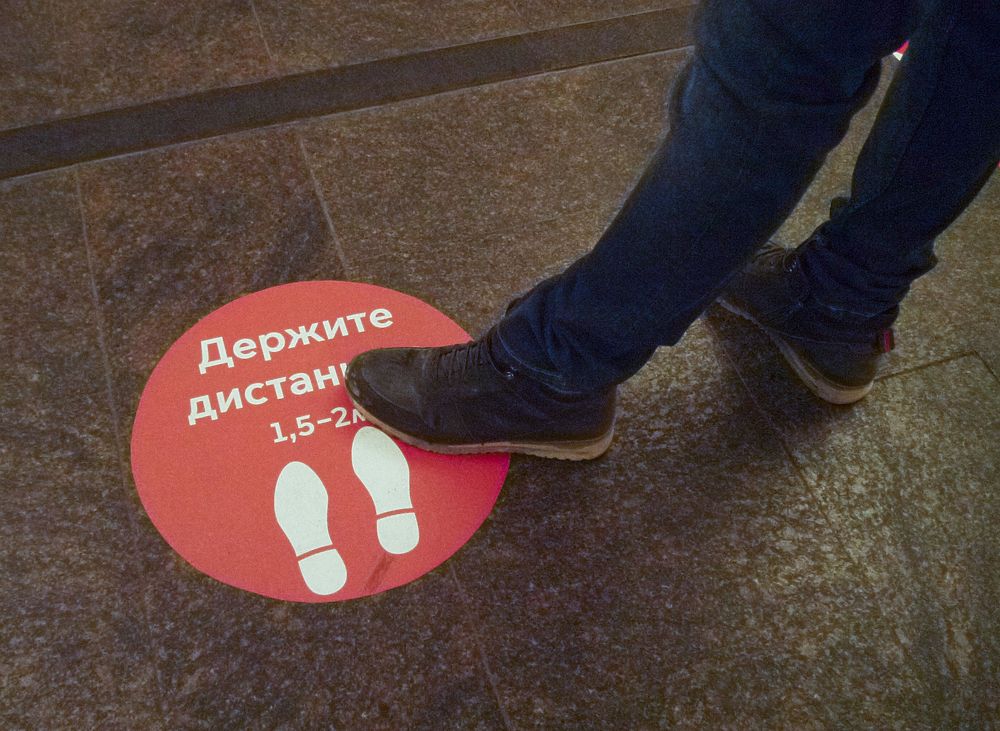 Очередным "коронавирусным" новшеством стали накленные на сиденья специальные красные стикеры с напоминанием о необходимости держать дистанцию. Дистанция, впрочем, сохраняется и без тревожных предупреждений - расстояние между пассажирами порой достигает десятков метров.