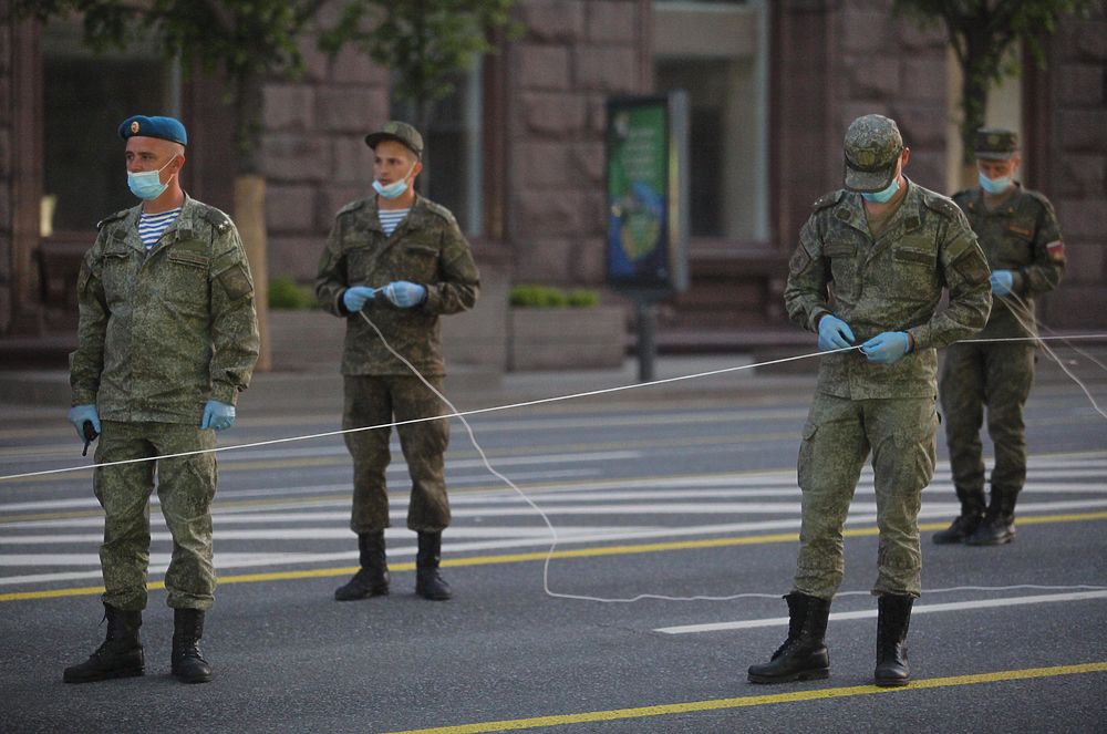 Вечером в воскресенье в Москве планировалась первая репетиция Парада Победы, который из-за эпидемии коронавируса перенесли в этом году на 24 июня. В интернете заранее был размещён план перекрытия центральных улиц, в метро - изменение работы некоторых станций.