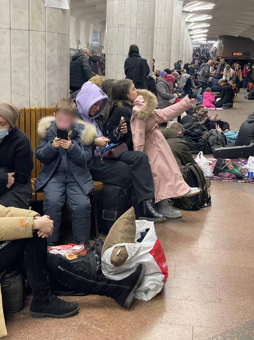 Жители Харькова ночуют в метро, укрываясь от возможной стрельбы. Раскладывают на полу подстилки, одеяла, многие принесли с собой подушки и сумки с перекусом. Нам прислали кадры из харьковского метро. Горожане говорят, что внутри холодно - поэтому они в куртках. Тем, кому достались места в стоящих на станциях вагонах (метрополитен не работает), считай, повезло.