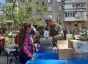 А наш военкор прошлась по обычным улицам и дворам. Где-то развернули полевые кухни - люди были рады горячей каше. Где-то даже успели установить стенды с фотографиями героев Великой Отечественной. Мариупольцы надели георгиевские ленточки, во дворах, кто как мог, накрыли столы с "гуманитаркой".
