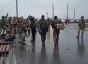 У некоторых пленных на руках виднеются татуировки непонятного происхождения. Каждый сдавшийся тщательно досматривается. Затем боевиков рассаживают по автобусам и везут в ДНР, где им в том числе оказывают медпомощь.