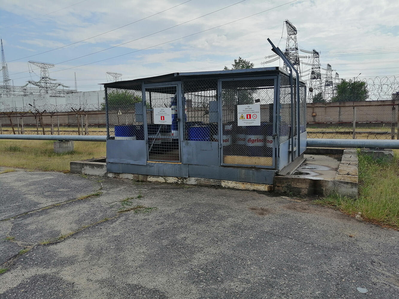Главе МАГАТЭ показали огромные цистерны с гидравлической жидкостью, которая используется в системах технического обеспечения АЭС. Цистерны посекло осколками, отверстия пока не заделали, из них струится техническая жидкость.