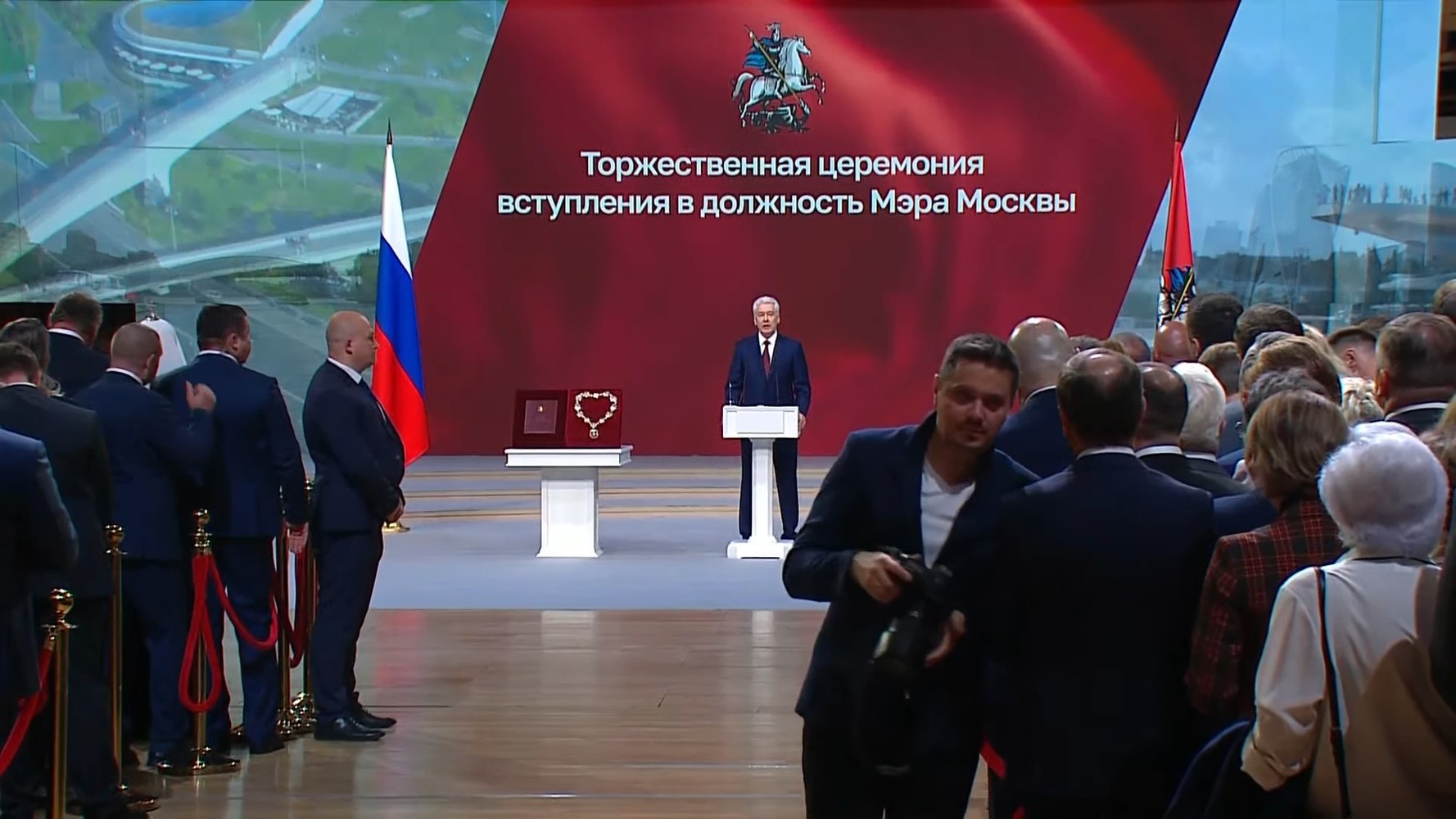 В московском концертном зале "Зарядье" состоялась инаугурация мэра Москвы Сергея Собянина. На торжественной церемонии собрались политики, чиновники, общественники и деятели культуры. Среди присутствующих были замечены артистка Диана Гурцкая, худрук Московского театра Олега Табакова Владимир Машков, генеральный директор госкорпорации "Ростех" Сергей Чемезов, губернатор Московской области Андрей Воробьев, патриарх Московский и всея Руси Кирилл и многие другие.