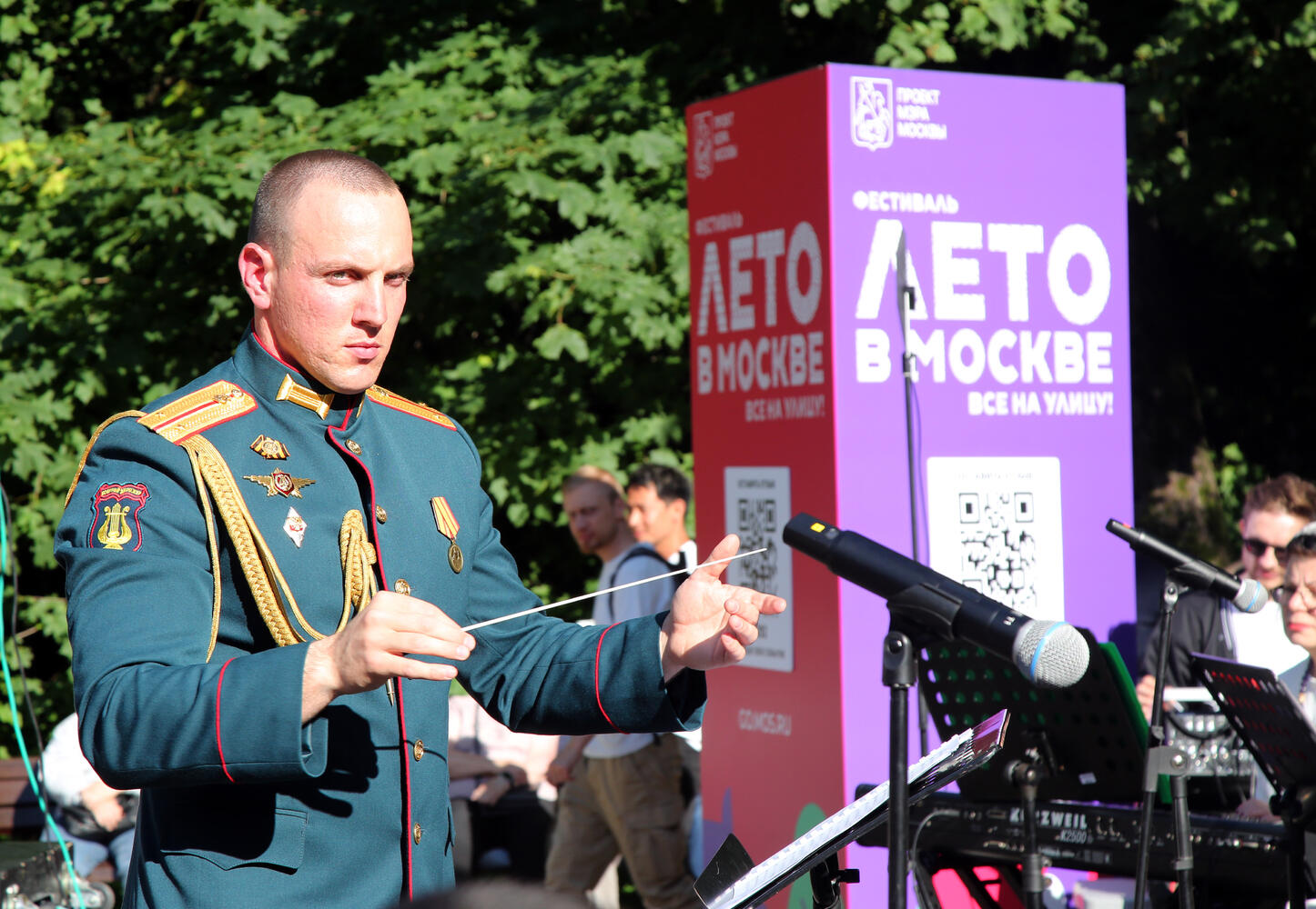 В субботу в парке "Фили" выступил ведущий творческий коллектив Алабинского военного гарнизона — Сводный военный оркестр 100-го Отдельного полка обеспечения и 15-го гвардейского мотострелкового Шавлинского ордена Ленина Краснознамённого полка гвардейской Таманской дивизии. Они представили свою летнюю программу для гостей парка.