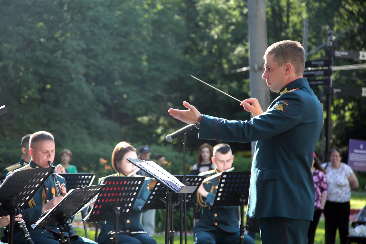 Концерт прошёл на малой сцене у главного входа в парк в рамках восьмого сезона программы "Военные оркестры в парках". - Мы рады, что эта прекрасная традиция, когда в парках звучат военные оркестры возобновилась - объявил со сцены ведущий.