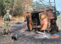 Тут же британский танк «Челенджер», которого разорвало от детонации боекомплекта, обломки раскидало по всему лесу.