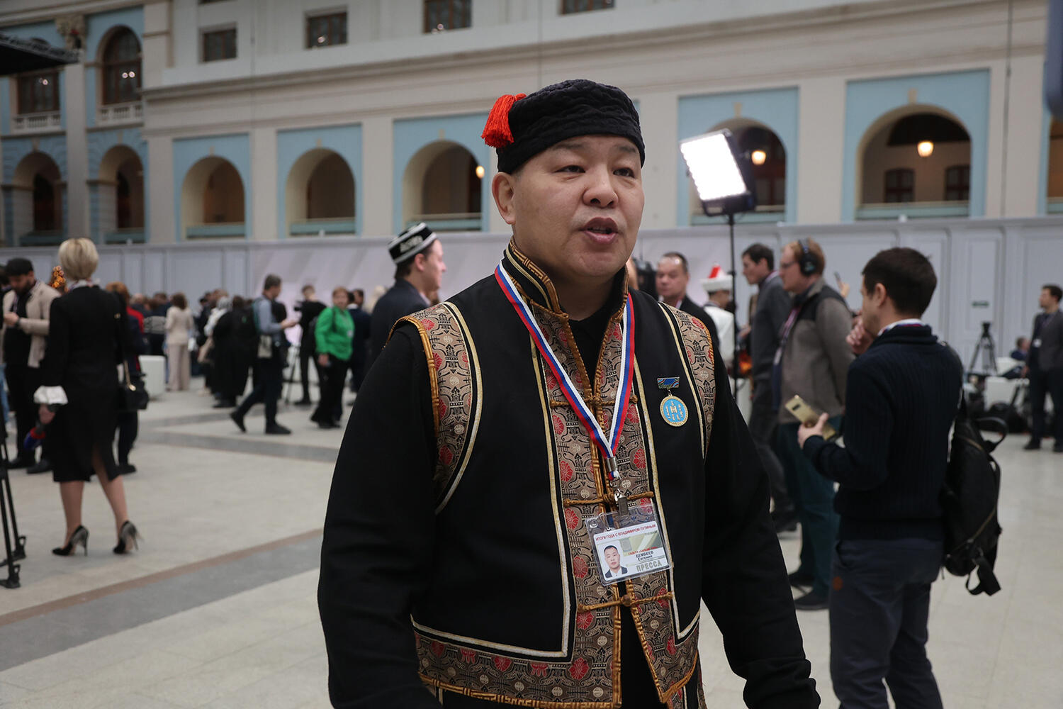 Эрнст, Собчак, журналисты в национальных костюмах: кадры ожидания большой пресс-конференции Путина