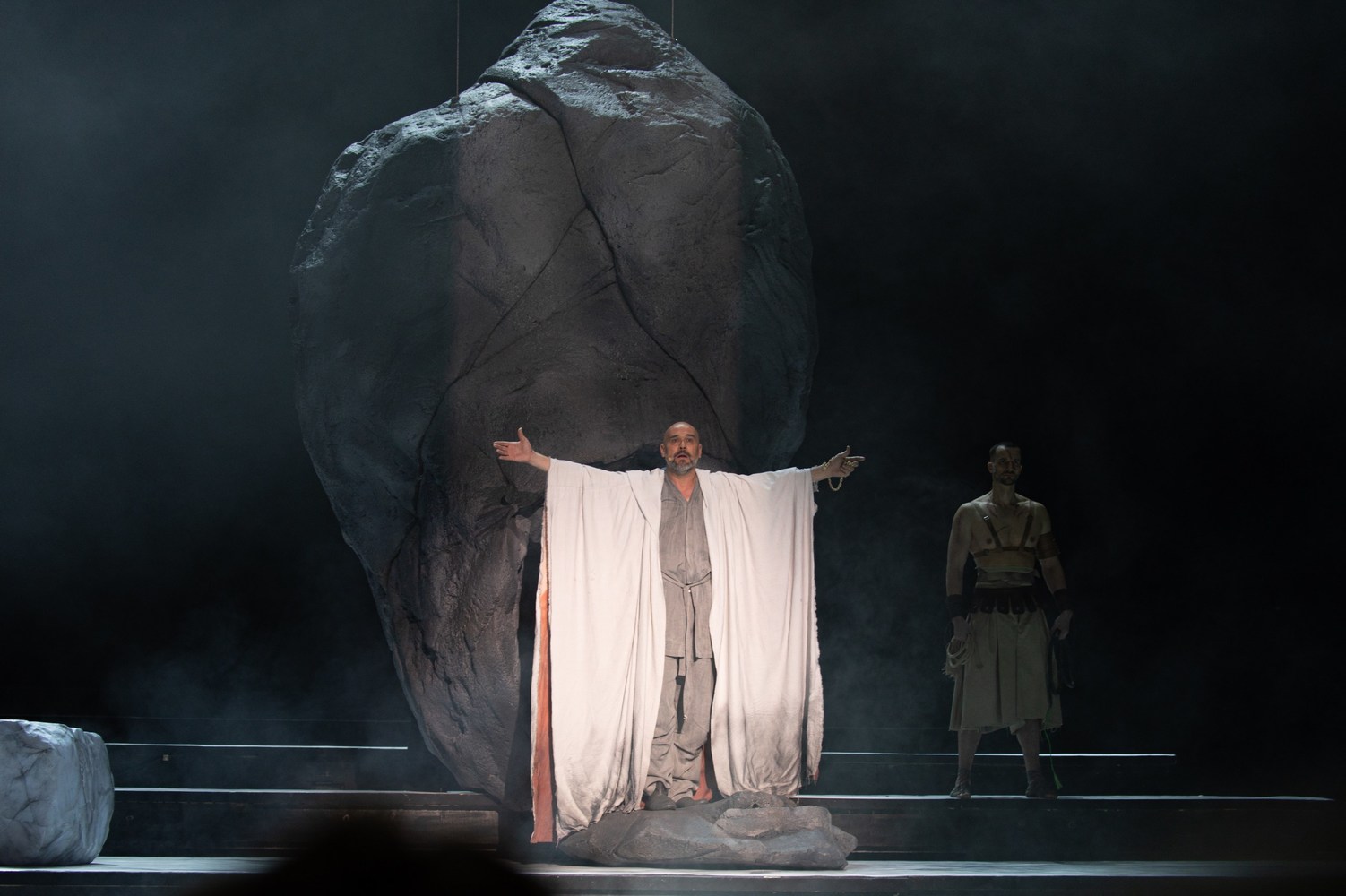 В основу сюжета легла история прокуратора Иудеи Понтия Пилата, роль которого во вчерашнем предпремьерном показе исполнил Максим Аверин. Воланда сыграл Александр Домогаров, Иешуа – Дмитрий Ломакин. В постановке задействован большой коллектив артистов.