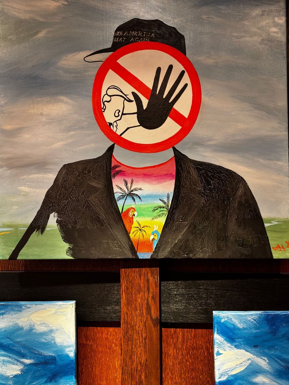 29 мая в Москве открылась выставка новых и уже известных картин художника-нонконформиста Игоря Новикова. Первые посетители, увидевшие триптих 2024 года, узнали на одном из полотен «зашифрованного», спрятанного за знаком Дональда Трампа.