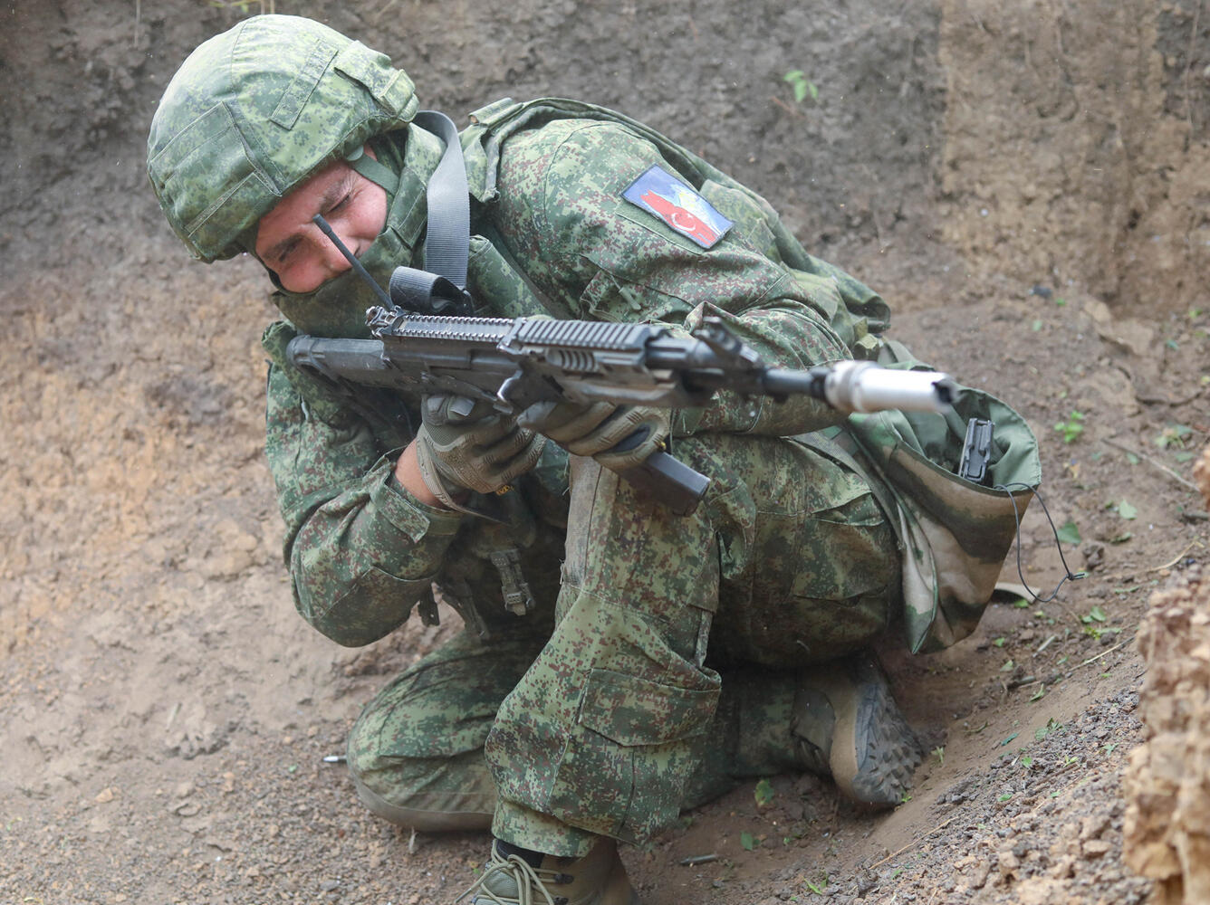Две боевые двойки под неустанным присмотром идущего в центре инструктора, прокладывают себе путь в траншее с помощью стрелкового оружия и осколочных гранат. Прилетает и в ответ. Штурмовиков закидывают средствами имитации, а по пути взрываются самые настоящие, не учебные мины «тээмки», то и дело заставляя вжиматься в землю.