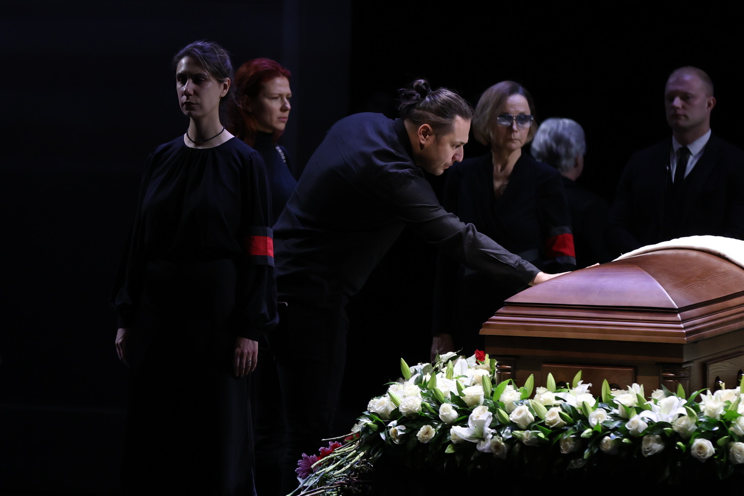 12 ноября в Театре имени Вахтангова состоялась церемония прощания с народным артистом России Владимиром Симоновым. Несмотря на дождливую погоду, у стен театра собрались многочисленные поклонники и коллеги актера.