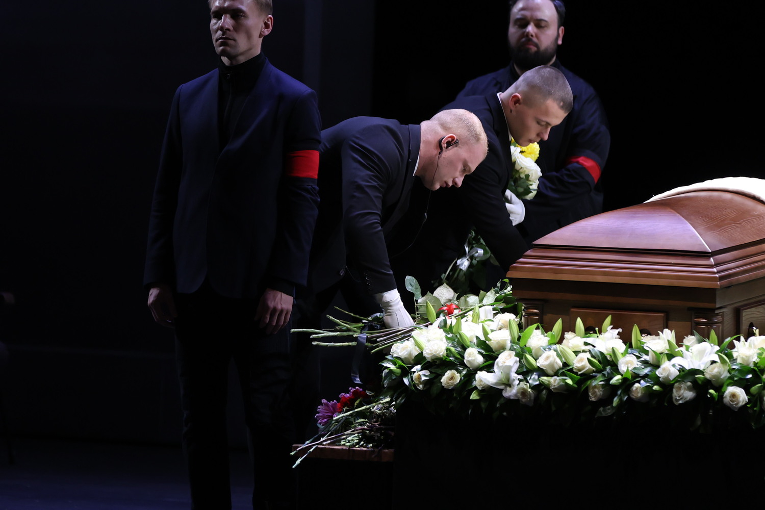 12 ноября в Театре имени Вахтангова состоялась церемония прощания с народным артистом России Владимиром Симоновым. Несмотря на дождливую погоду, у стен театра собрались многочисленные поклонники и коллеги актера.