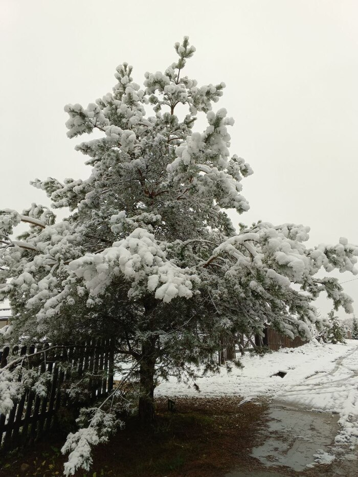 Синоптики обещают до 4 см. Снег липкий и мокрый. Деревья склонились под его тяжестью. И только комары продолжают бороться за выживание.