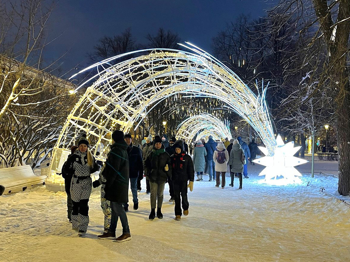 На Рождество в Санкт-Петербурге установилась комфортная зимняя погода: -10-11 градусов (хотя ощущается как -15), безветренно, снежинки кружат в воздухе, а 8 января даже выглянуло солнце. Такая погода способствует тому, что на улицах города наблюдается столпотворение из питерцев и приезжих гостей.