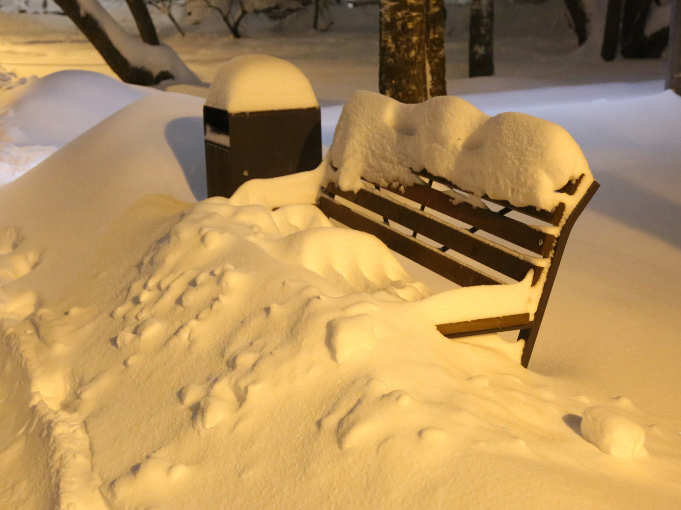 Машины похожи на спящих белых медведей: от некоторых торчат только стекла, остальное — под снегом. Урны? Скамейки? Их просто нет, они растворились в белой пелене. Сугробы — выше головы, и идти по ним невероятно трудно, ноги проваливаются по колено.