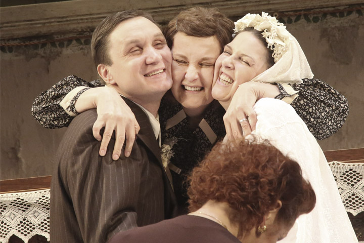 В этой пьесе еврейский мир во всех его противоречиях, с плюсами и минусами. А сцена напоминает кинопавильон — глухим занавесом отбита большая часть сцены, и действие происходит, по сути, на узком пространстве.