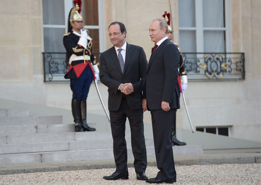Президенты России и Франции Владимир Путин и Франсуа Олланд завершили полуторачасовые переговоры рукопожатием и тепло простились на крыльце Елисейского дворца, не сделав каких-либо заявлений.