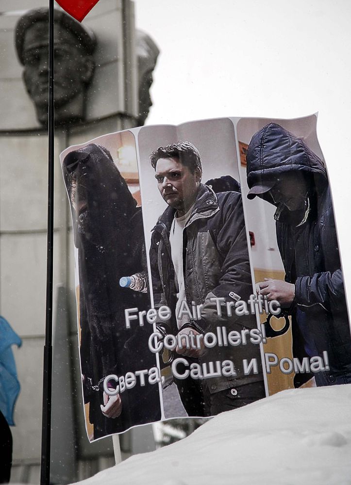 Профсоюз авиадиспетчеров России (ФПАД) провел 24 января митинг за освобождение авиадиспетчеров Светланы Кривсун, Романа Дунаева и Александра Круглова - фигурантов дела катастрофе самолета главы Total Кристофа де Маржери.