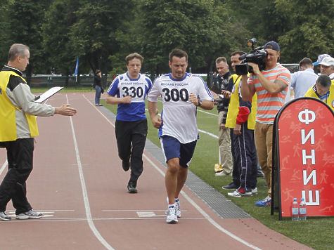 Единственная женщина, поддержавшая инициативу, — 13- кратная паралимпийская чемпионка Рима Баталова. «Я думала, что наши коллеги здесь тоже будут, мне даже в голову не пришло никого агитировать, — говорит она. — Возможно, они испугались, что будет тяжело». Бег, наклоны, прыжки в длину, отжимания — по всем нормам, которые сегодня сдают депутаты, она берет «золото», несмотря на то что рассталась с большим спортом 6 лет назад. Отличные показатели и у Дмитрия Носова — 3 километра за 13 минут.