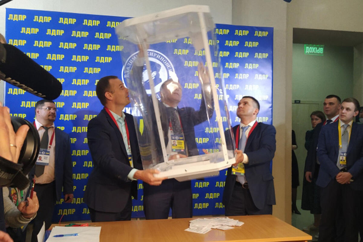 На съезде ЛДПР, который сегодня проходит в Москве и должен избрать нового лидера партии взамен скончавшегося Владимира Жириновского, началось голосование. Делегаты на глазах СМИ подходят у урне и опускают в неё карточки с напечатанными фамилиями. Почти на всех значится фамилия Леонида Слуцкого.