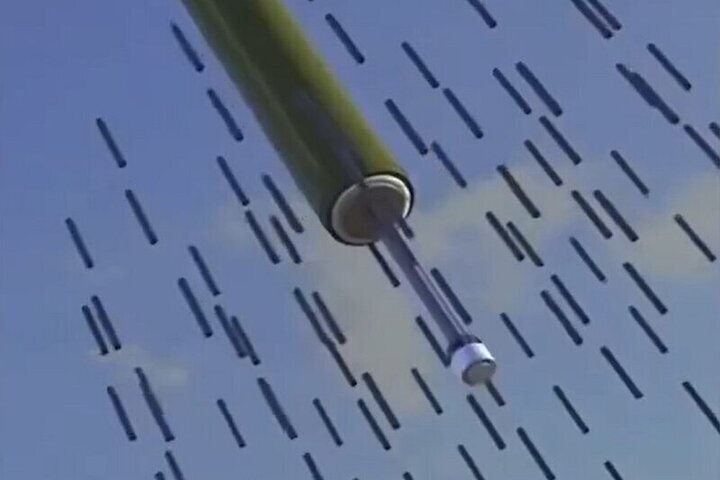 На анимации видно, как боеприпас запускается с мобильной установки. После чего он делился на многочисленные контейнеры. После их взрыва появляются углеродные нити, вызывающие короткие замыкания в сети. Дальность полета «электро-оружия» предварительно составляет около 300 км, а вес снаряда может достигать порядка 500 кг.