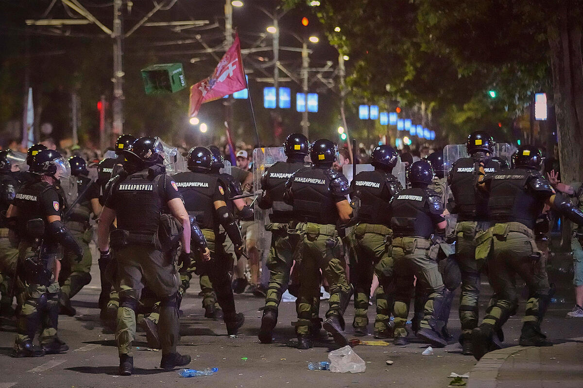 Тысячи людей перекрыли улицы в Сербии, где напряженность резко возросла после ареста антиправительственных демонстрантов, которые днем ранее вступили в столкновения с полицией во время массового ночного митинга с требованием досрочных выборов, что ознаменовало кульминацию многомесячного общественного несогласия.