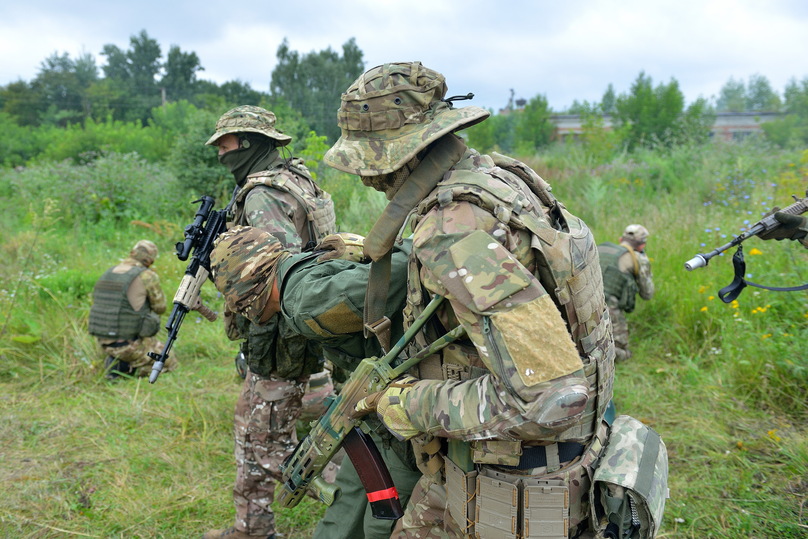 На практике действуют в зависимости от ситуации, как правило, работают один снайпер и два стрелка. Антидроновые одеяла и маскхалаты — обязательная часть экипировки.