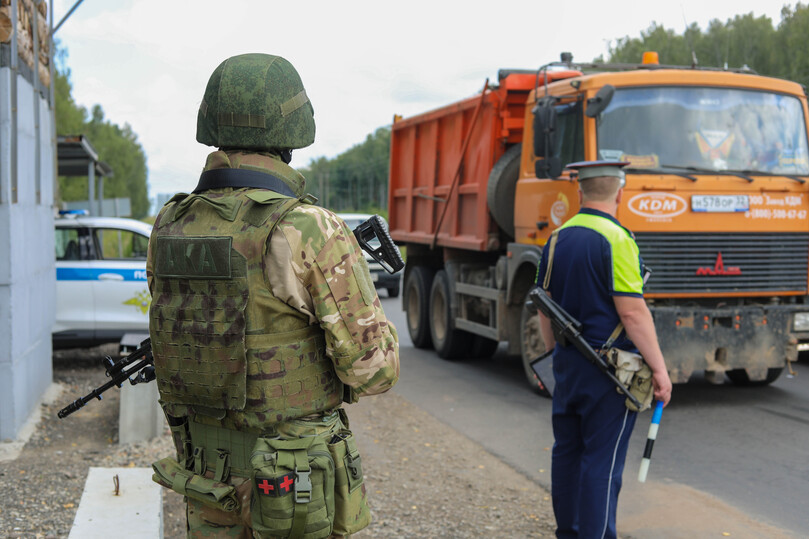 На пути к цели мы проехали еще пару блокпостов, где бойцы дежурят с представителями военной полиции и Росгвардии. Приграничье — вотчина группировки прикрытия госграницы.