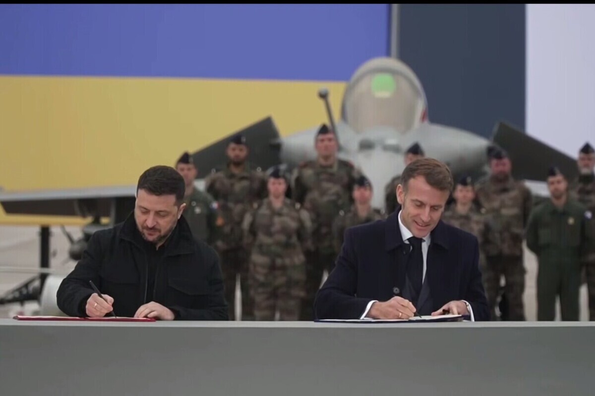 Владимир Зеленский и президент Франции Эммануэль Макрон подписали в Париже оборонное соглашение, которое включает в себя передачу Киеву современных истребителей Rafale и мощных систем ПВО SAMP/T.