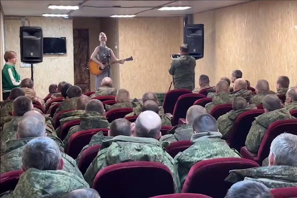 Заслуженная артистка России Юта выступила с концертом перед военнослужащими, участвовавшими в освобождении Гуляйполя. Выступление прошло на временной площадке, организованной в полевом укрытии на передовой.