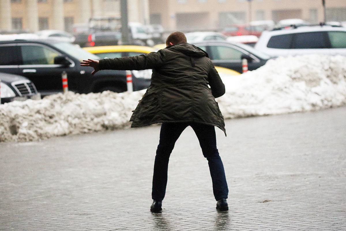В случае падения нужно постараться удержать равновесие. Сгибайте колени и размахивайте руками. Старайтесь не падать на вытянутые руки.