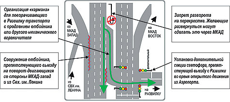 Между тем жителей Развилки совершенно не устраивает такой ход событий. На общих собраниях и на форуме они самостоятельно разработали ряд простейших мер, которые ликвидируют пробки и аварии на этом участке (см. карту №1). “Нам помогали специалисты МАДИ и консультировали местные сотрудники ГИБДД, — рассказал “МК” Алексей Крюков. — Кроме того, мы ездим здесь каждый день и знаем все проблемы движения на этом участке. Нам они гораздо виднее, чем министрам из их кабинетов”. Ликвидация светофора, как обещают местные водители, вызовет народный бунт: если власти не примут решение не перекрывать жизненно важный поворот, первого мая водители перекроют Каширское шоссе. “Мы им устроим добрую демонстрацию с шариками и плакатами”, — серьезно пообещали жители.