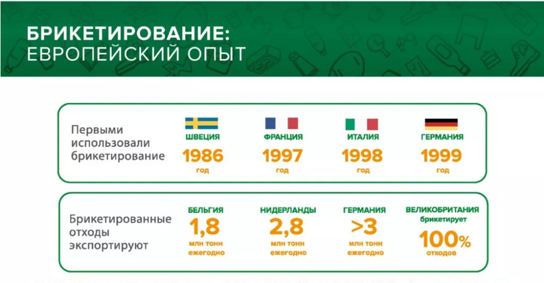 Более того, одним из вариантов утилизации уже брикетированного мусора является его вывоз в Швецию. Посол королевства в России Петер Эриксон подтвердил, что Стокгольм готов закупать российский мусор. Дело в том, что утилизация ТКО в Швеции является неотъемлемой частью энергетики страны. Термическая переработка отходов в тепловую и электроэнергию позволяет существовать не только отдельным предприятиям (таким как, например, экологически чистый завод Volvo, по информации от издания «Народные новости»), но и целым городским районам. Уже много лет наш скандинавский сосед не только перерабатывает все возможные объемы ТКО, но и закупает их за рубежом.