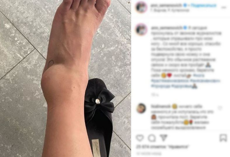При этом певица опубликовала фотографию левой ноги, которая довольно серьезно отекла. Многих пользователей эта фотография испугала и они стали писать, что вряд ли подобное стоит называть банальным растяжением.
