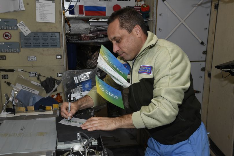 Напомним, что ранее, 28 октября в 3:00 утра по московскому времени, на стартовом комплексе «Восток» космодрома Байконур состоялся пуск ракеты-носителя «Союз-2.1а» с логотипом Сбера. «Союз-2.1а» вывел на орбиту транспортный грузовой корабль «Прогресс МС-18», который помимо стандартных грузов доставил на МКС флаг Сбера. Именно с ним и было записано праздничное обращение космонавтов, которые оставили на флаге свои автографы.