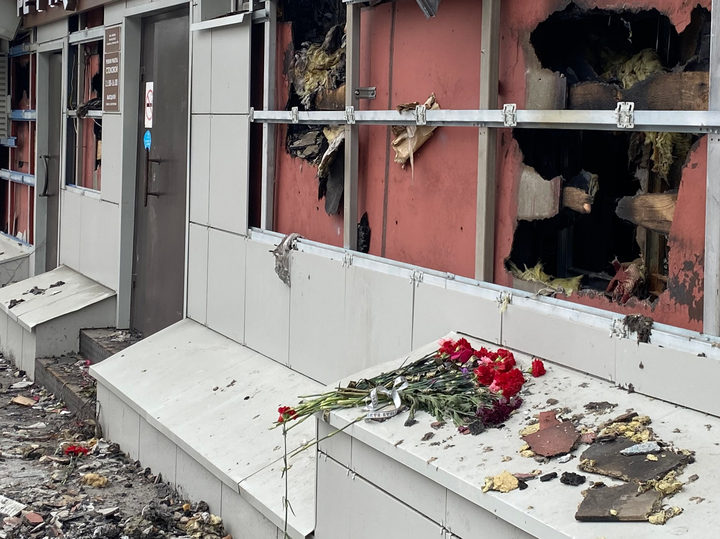 «Полигон» располагался на Никитской, 49а. Со дня трагедии прошло две недели, а мусор с места пожара никто убирать не торопится. Строение обнесли оградительной ленточкой, кое-где окна забили фанерой. На этом всё.
