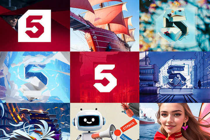 Также с помощью ИИ Пятый канал впервые сделал эфирное оформление и провел рестайлинг логотипа. Трансформация формы логотипа отразилась в четких прямых линиях, появился объем, ушли округлые формы, стало больше устойчивых элементов. Эфирные идентификационные ролики получили более широкую цветовую палитру. Кроме того, они обрели жанровую и сезонную принадлежность по временам года. Новое оформление зрители Пятого увидели 7 ноября. Часть совместной работы дизайнеров и ИИ была представлена еще 5 октября на презентации телевизионного сезона 2023-2024. Она стала самой масштабной в серии оригинальных мероприятий для рекламодателей. Пятый представил свои сериальные и программные планы и подвел итоги в необычном формате – музыкально-гастрономического ринга. Всего в уходящем году канал организовал 16 презентаций с участием звезд российского кино в Москве, Санкт-Петербурге и других городах России. Специально для гостей провели экскурсии по телецентру в ключевых подразделениях канала: аппаратных и студиях новостей. Каждый гость получил возможность попробовать себя в нескольких телевизионных профессиях, задать вопросы звездам кино в неформальной обстановке.