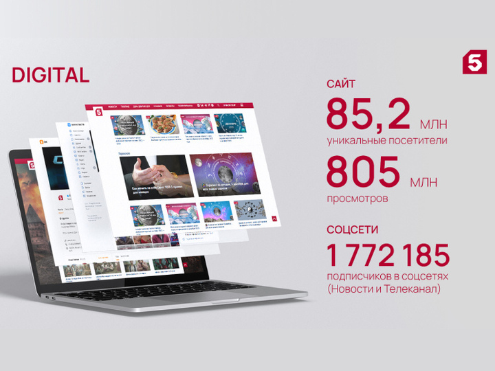 В 2023 году Пятый активно развивался в интернет-пространстве. Количество подписчиков, просмотров и охватов выросло, установлено сразу несколько абсолютных рекордов посещаемости.